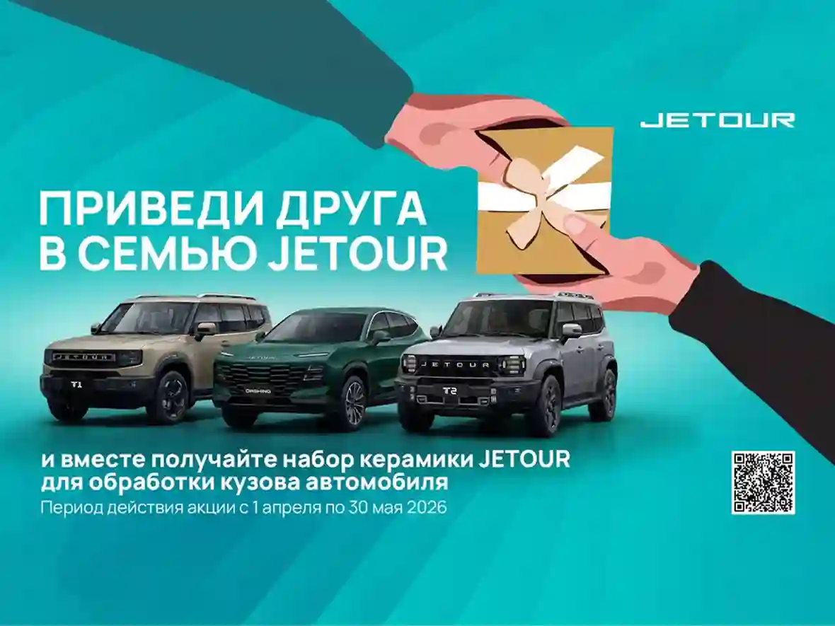 JETOUR объявляет о возобновлении специальной программы для владельцев автомобилей бренда «Приведи друга в семью JETOUR». Участвуя в акции, текущие клиенты и новые покупатели, приобретающие автомобили JETOUR в официальных дилерских центрах бренда в России, могут получить приз – набор JETOUR Керамика для дополнительной защиты кузова автомобиля. Акция действует с 01 апреля по 30 мая 2026 года.